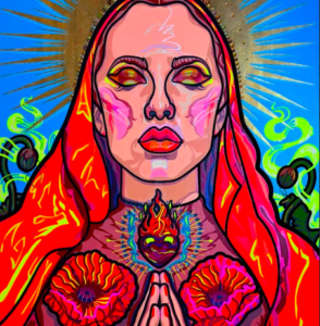 Burning hearts, halos, serpents, thorns and flowers — Ksenia Sulaeva paints emotional mythologies through a symbolic, feminine language.