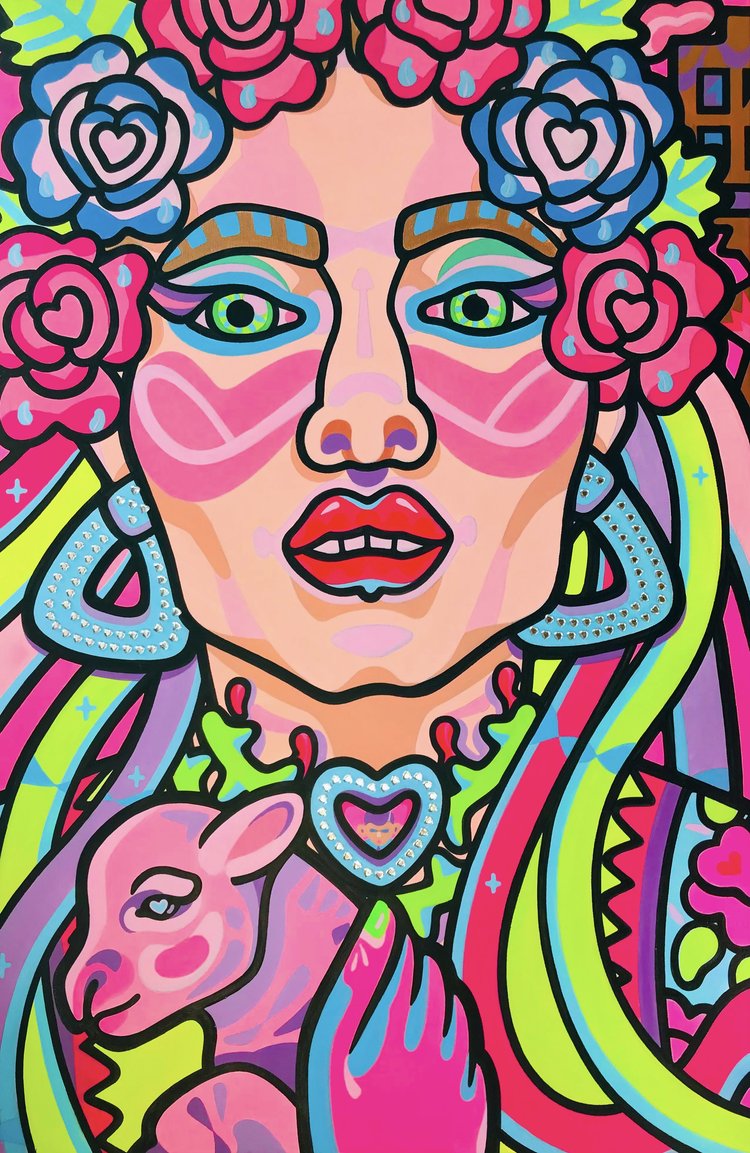 Born in 1995 in Rubezhnoe, Ukraine, Ksenia Sulaeva is a Ukrainian artist based in Tallinn, Estonia. Her work merges monumental painting and pop art, creating bold compositions that evoke delicate, feminine mythologies while exploring transformation and resilience. Influenced by sacred iconography and evocative natural landscapes, she bridges classical techniques with contemporary themes. For exhibitions, commissions, or creative dialogue, please get in touch.